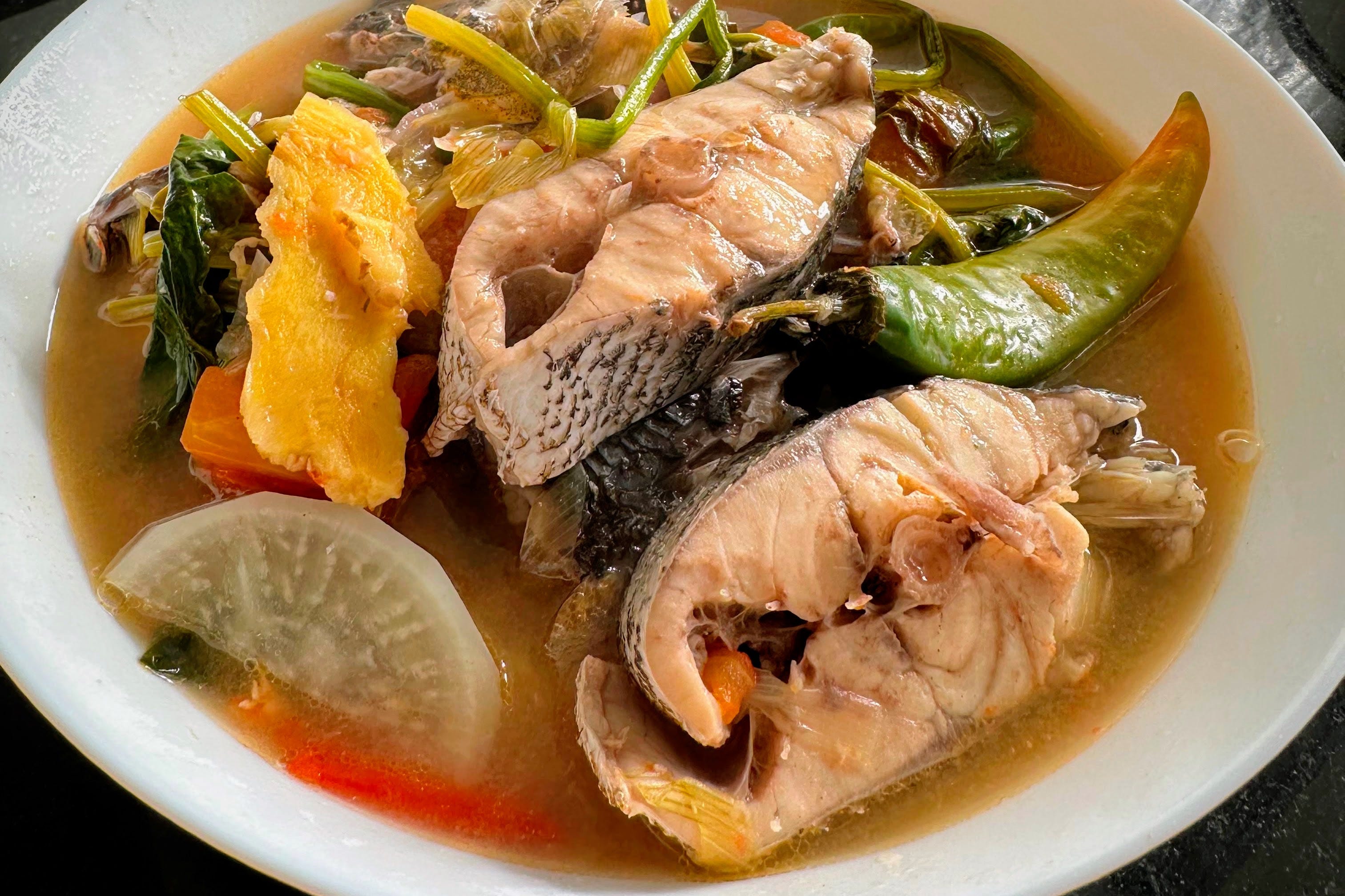 Enjoy Fish Sinigang with rice and make a patis and chilli dip close by!